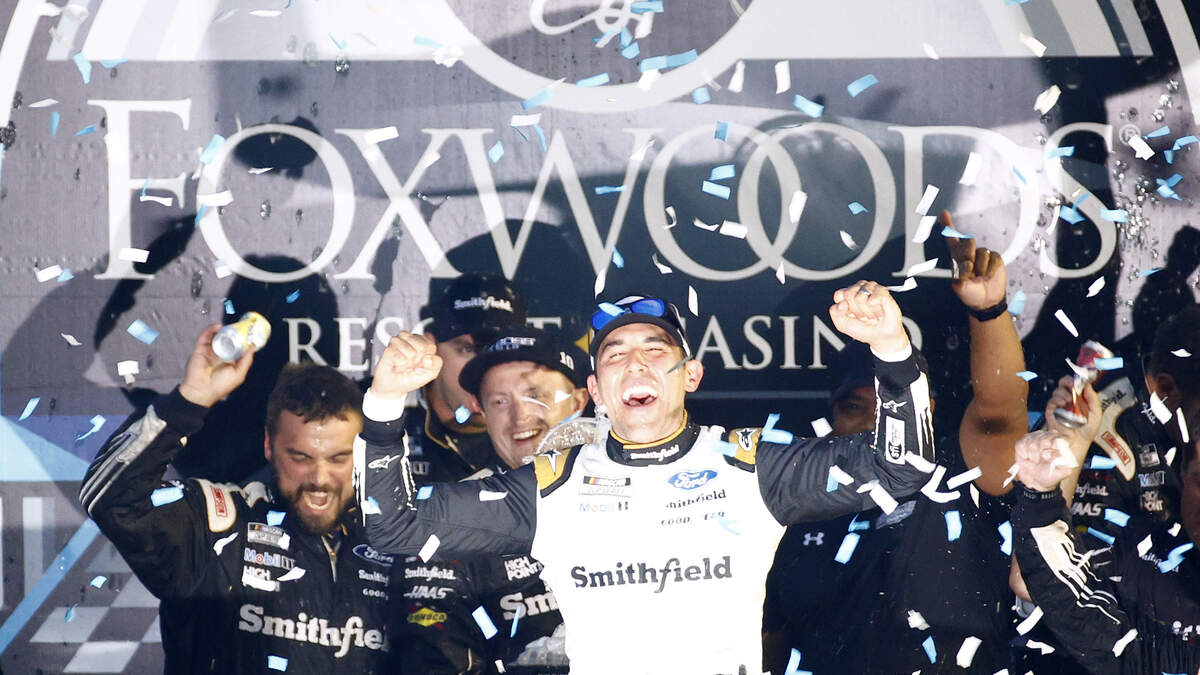 Anyway, the race was red flagged and basically reset just 6 laps in. With some contenders already out, it was due to be a really interesting race. Lots of scenarios were in play - guys are trying to lock down points to secure or bolster their playoff spot, while other drivers are fighting for their best finishes to ensure that they can get a seat next season. Matt Dibenedettoand his team took a gamble to stay out as it started to get dark on the track, but he ended up having to pit. That left the door open for Aric Almirola to steal the spotlight...and he did!