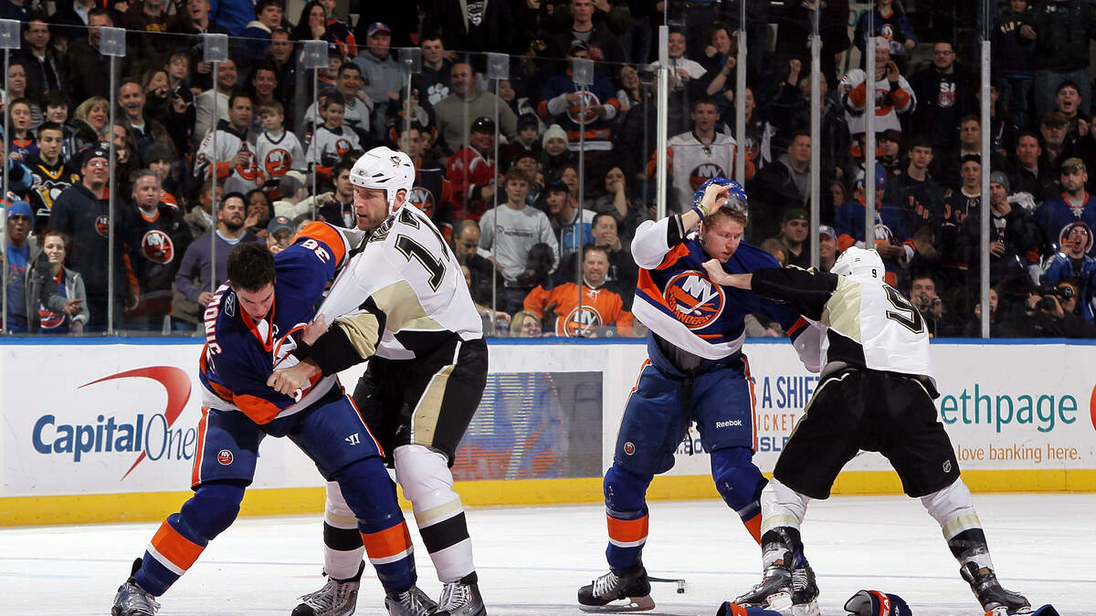 I will never forget this night. It was pegged as a disaster from the start. The Islanders brought up every big rig in their system to come after the Penguins on this night. Things really went wild after Max Talbot got attacked from behind, and the rest of the night was a gong show. Of course, things really got started a few days earlier, when Brent Johnson basically ended Rick DiPietro's career with a strong left hander to the jaw.